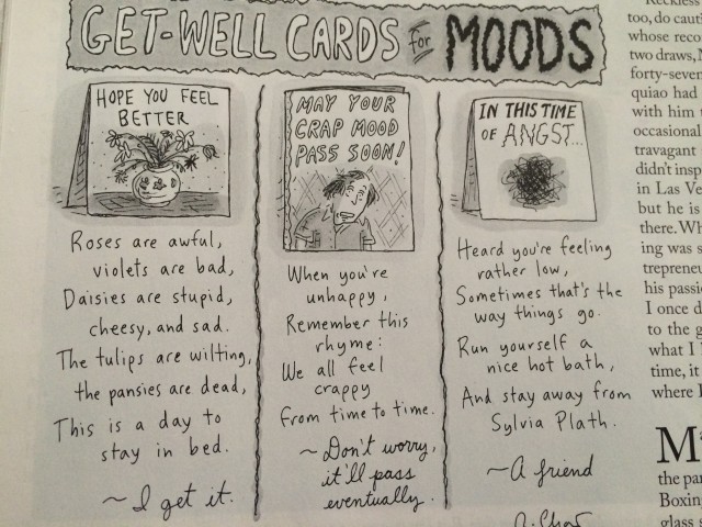 I guess what really surprises me, in retrospect, is how little the NHS seems attuned to the psychological consequences of an operation. Several mornings running I told my nurses I felt helplessly depressed and needed some help. They all seemed surprised, though they must come across this all the time, if my friends who’ve had operations are to be believed. One after another, they’ve been telling me of the abysses they, too, slipped into, sometimes for weeks after their ordeals. Yet there is absolutely no support when you get into this state.